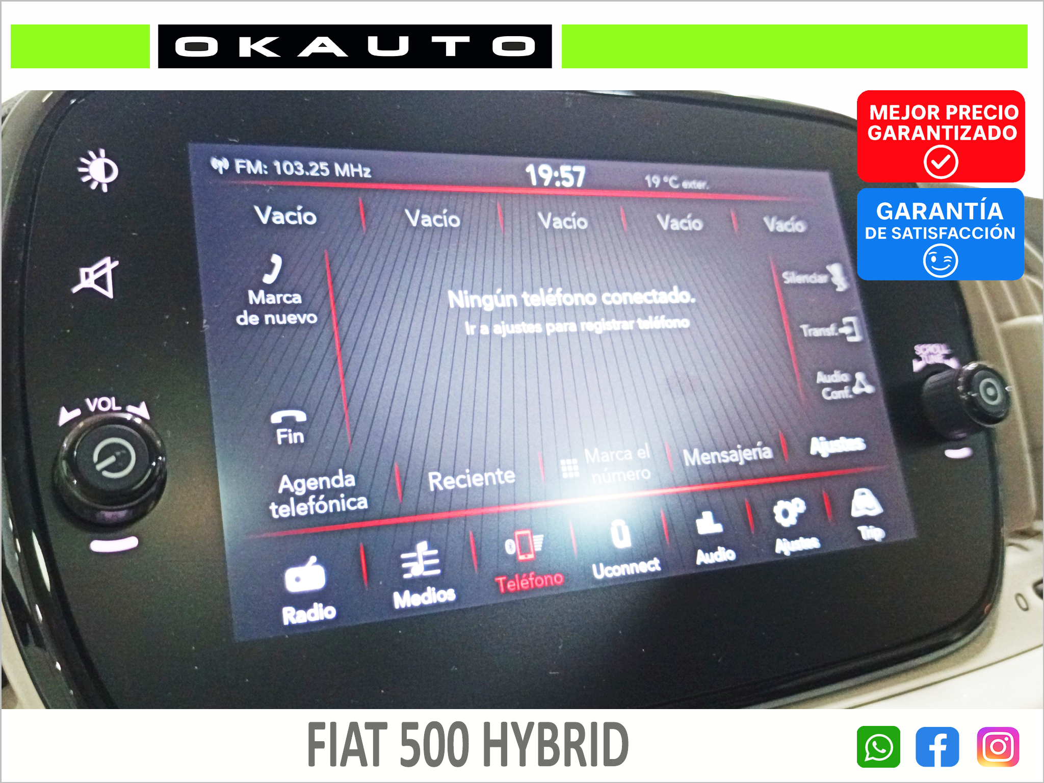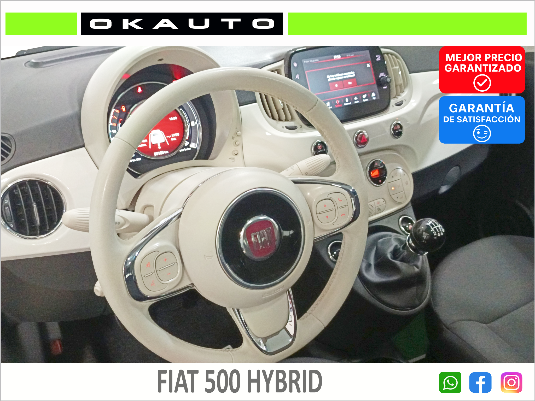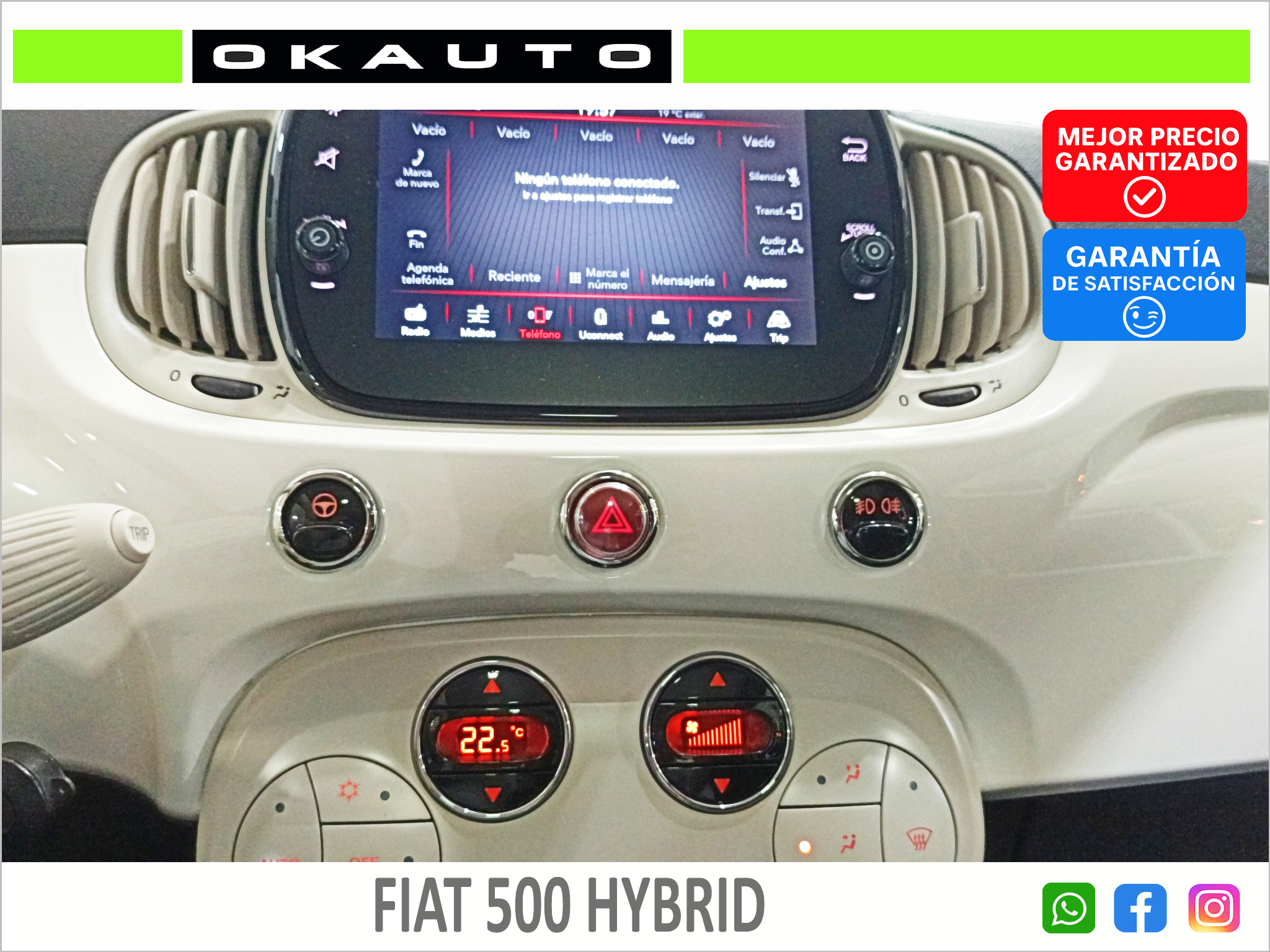 - El interior está equipado con lo esencial: aire acondicionado, sistema multimedia con conectividad, luces LED diurnas, y elementos modernos que hacen de él un coche funcional y actual.